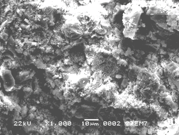 Figure 6 shows the results of SEM of the fractured arbolite based on composite cement using a clay shale.