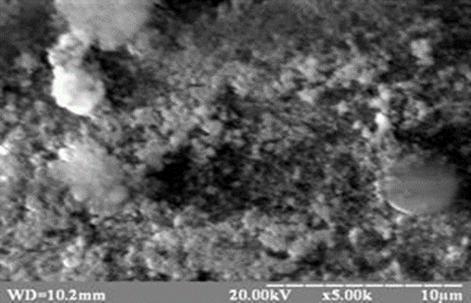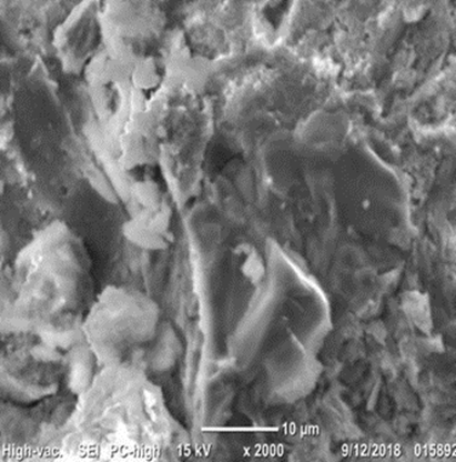 Figure 2 shows that the composition of microsilica is predominantly a homogeneous fraction. Microsilica interacts with cement hydration products, forming additional hydrate phases and acting as a gel binder. Microsilica particles, which are 0.5-0.05 μm in size, are capable of filling the voids between cement and aggregate particles, thereby increasing the strength and reducing the delamination of the concrete mixture.