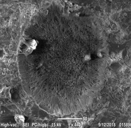 The composition of microcalcite is mainly CaCO3 (96-97%), and it also contains impurities of iron oxide, sulfur, magnesium, graphite, and aluminum in an amount of 1-3%.