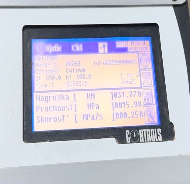 Images of the fired samples after compressive strength testing are shown in Figure 3 to provide visual documentation of the experimental procedure and sample integrity. The tests were carried out on presses from the company "Controls" (Italy).