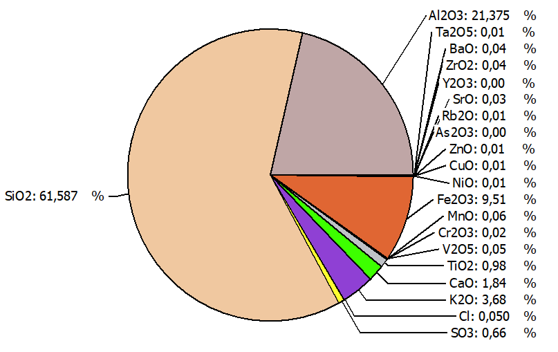 The chemical composition of clay by element is shown in Table 3 (Figure 1).