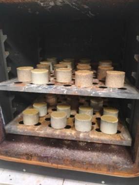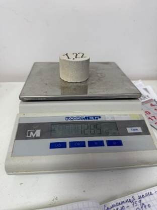 The average density, water absorption, and compressive strength (Figure 3) were determined in accordance with the requirements of the regulatory documents [21], [22] in force in the Republic of Kazakhstan, which govern testing methods for silicate brick and autoclaved silicate products. Compressive strength tests were carried out on cylindrical specimens with dimensions of Ø50×50 mm. The reported strength values were taken as the average results obtained from a series of tests.