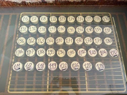 The formed specimens were subjected to autoclave treatment under conditions corresponding to the industrial technology of silicate brick production (Figure 2). The treatment was carried out in an autoclave (Chemical Equipment and Industrial Fittings Plant, Kielce, Poland). The autoclaving regime corresponded to the technological mode applied at the silicate brick plant in Uralsk: temperature increase to 174-175 °C over 1.5-2 hours, followed by isothermal holding at 174-175 °C and a saturated steam pressure of approximately 0.8 MPa for 6-8 hours. This was followed by gradual pressure reduction and cooling to atmospheric conditions over 2 hours.